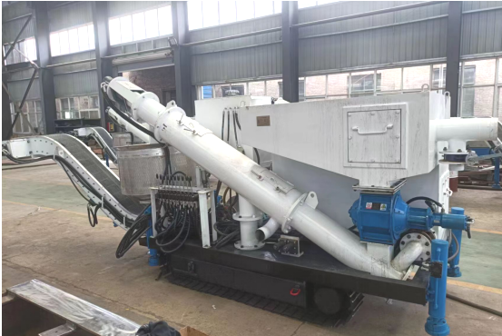 分離機具有結(jié)構合理緊湊,操作簡單,板鏈輸送機可180°扇面自由定位旋轉(zhuǎn)、鏈速0-500mm/s可調(diào),螺旋脫水輸送機0-100r/min可調(diào)、脫水效果好,具有液壓履帶行走功能,因此該裝備移動方便。